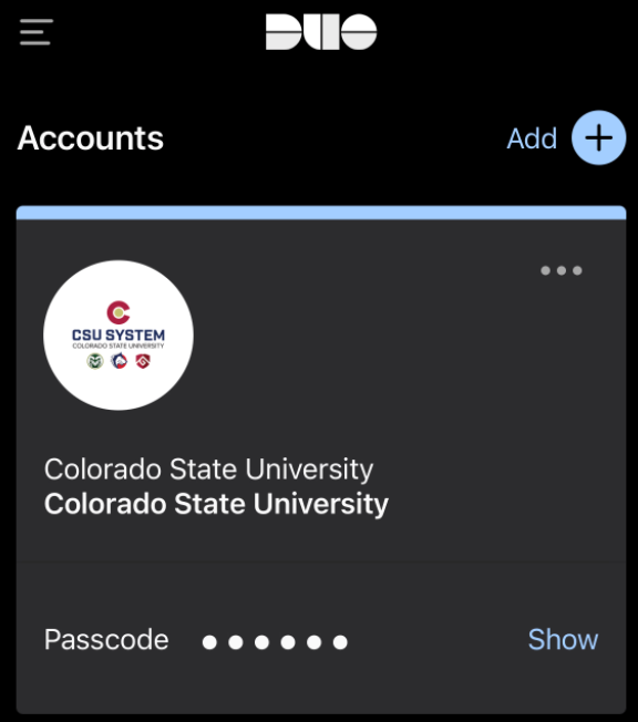 9.You should now be back at the home screen of the app with the newly added account. For future DUO prompts you can either utilize push notifications or enter a bypass code to complete the prompt.